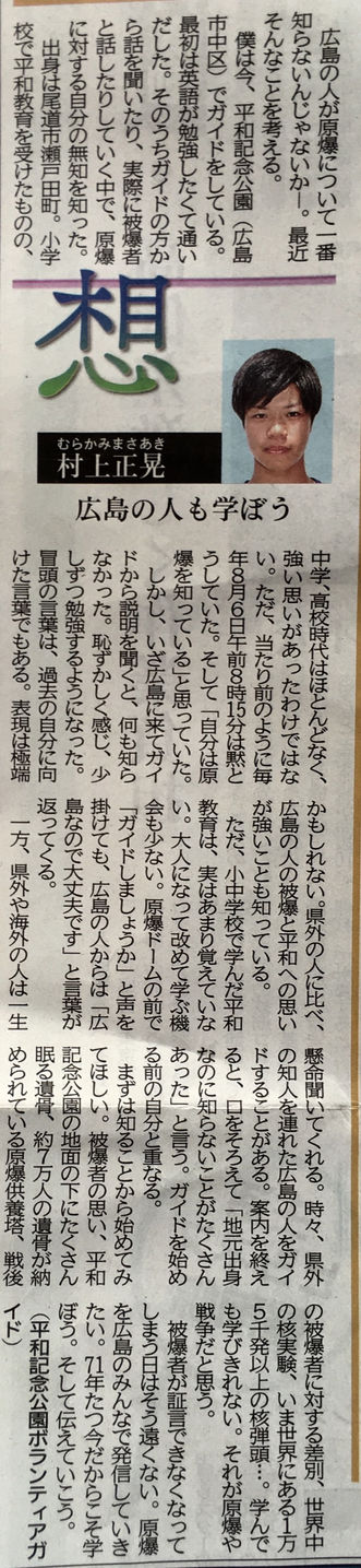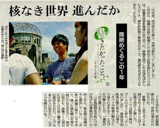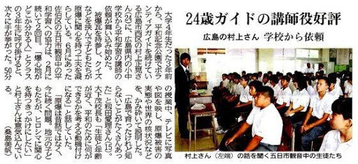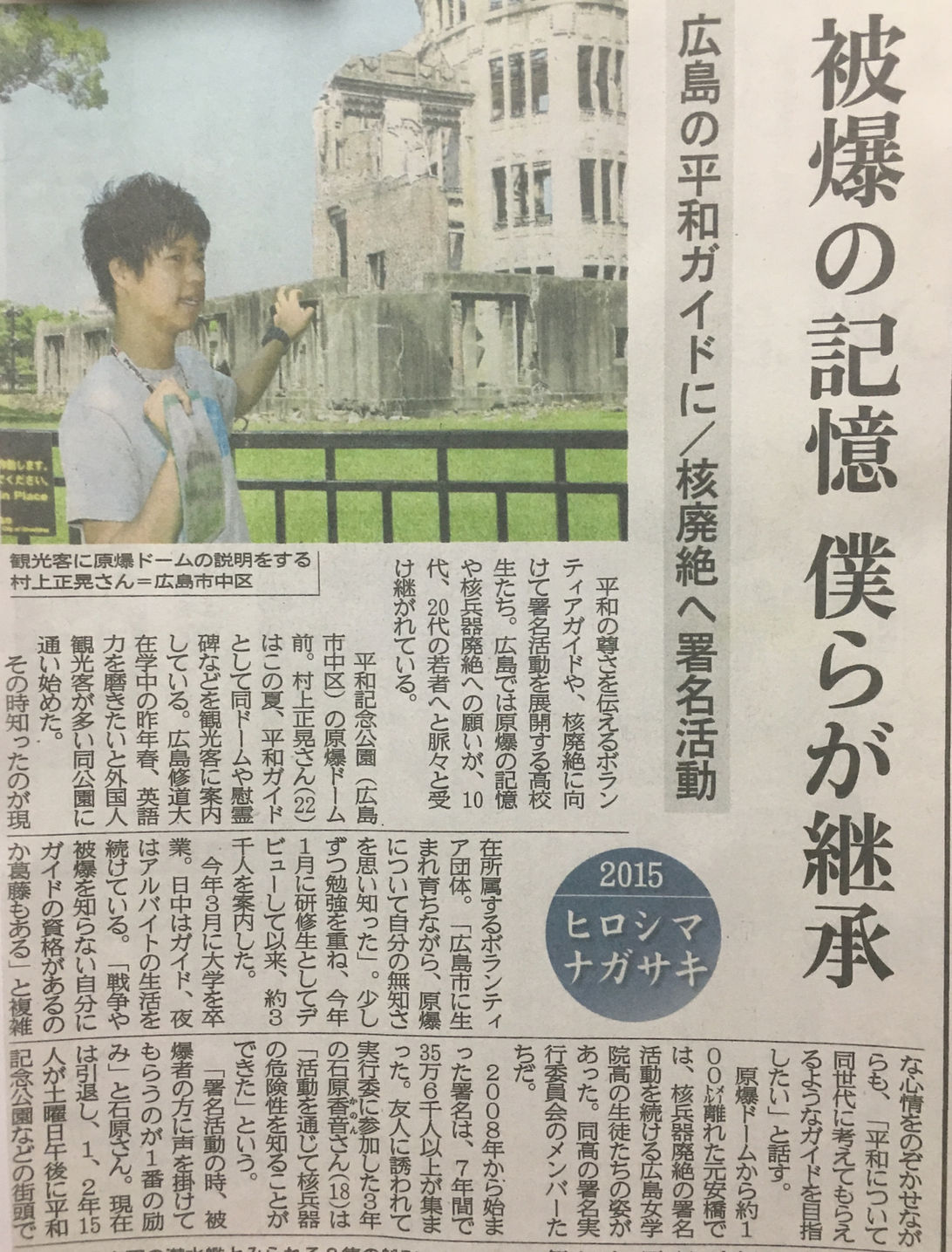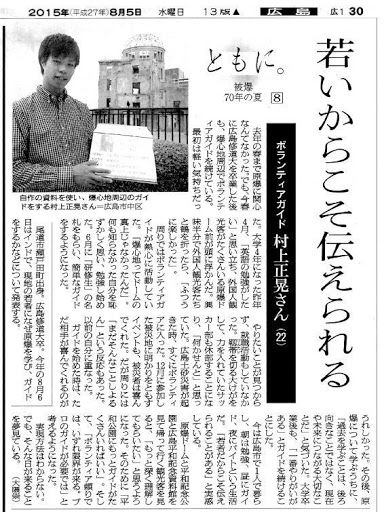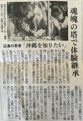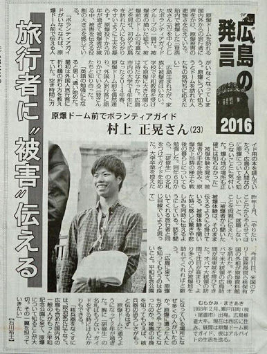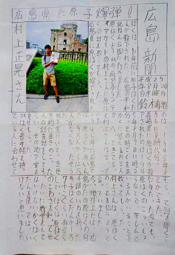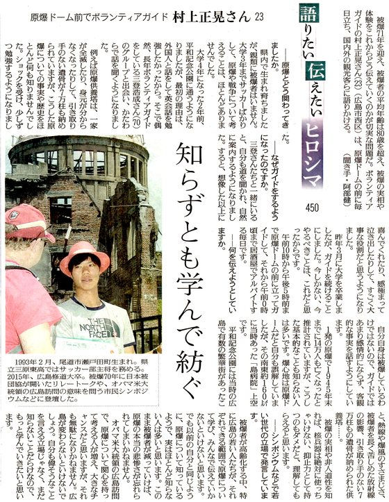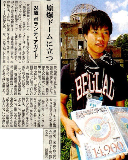 最初は観光客と折り鶴を折る活動をしていたが、その合間ガイドの方や被爆者の方の話を聞き、自分の無知を痛感し、そこから少しずつ勉強を始める。
