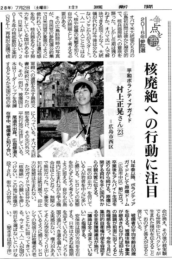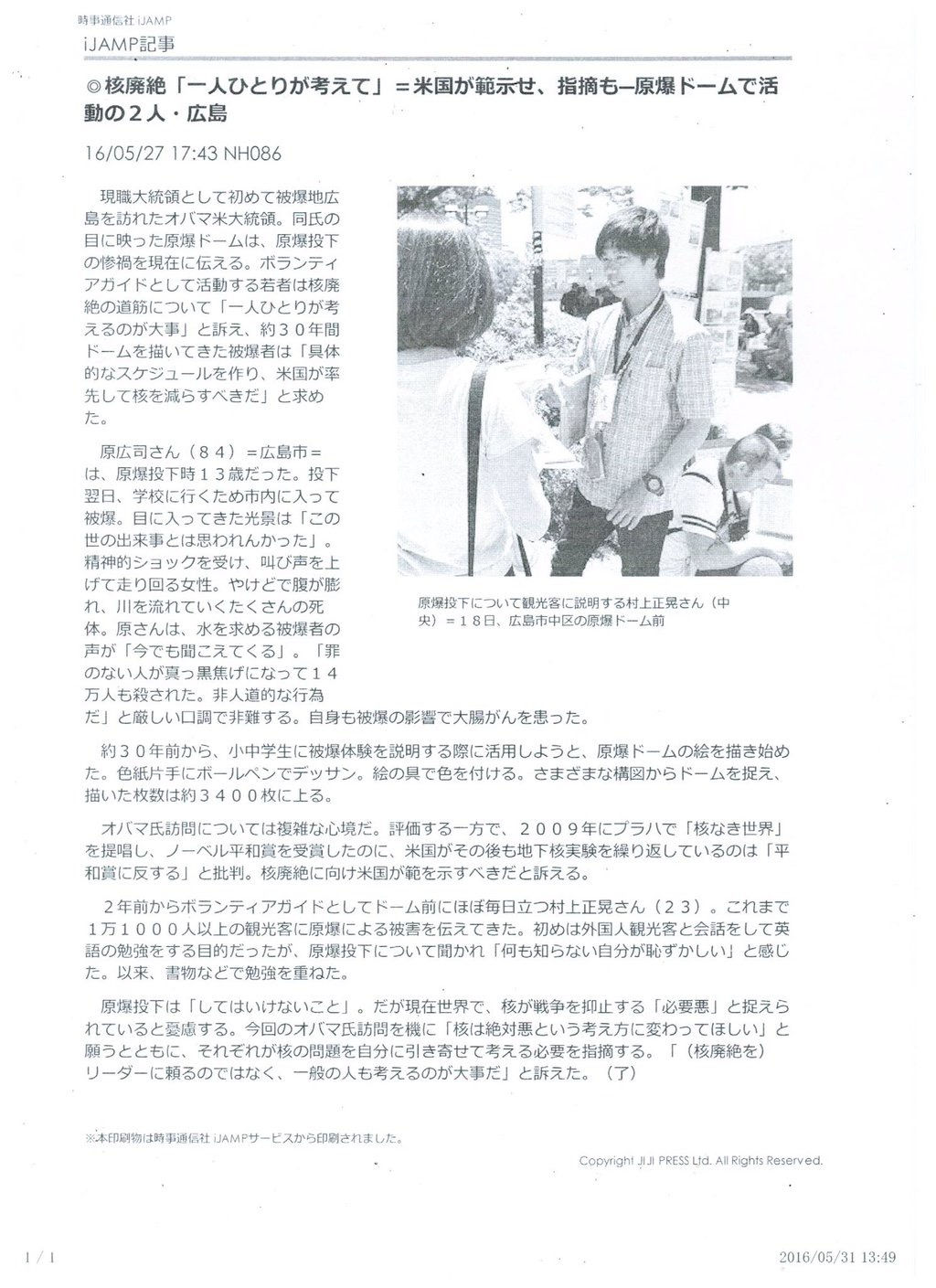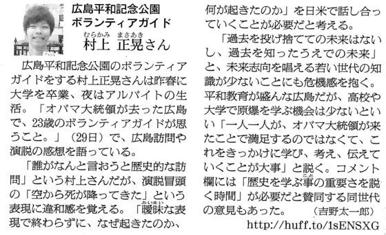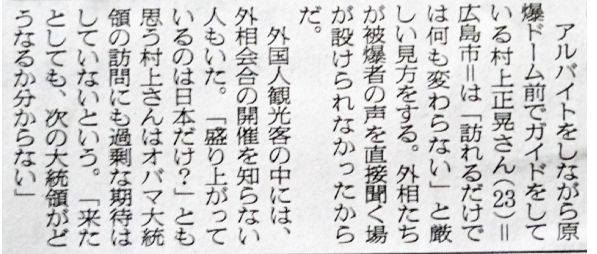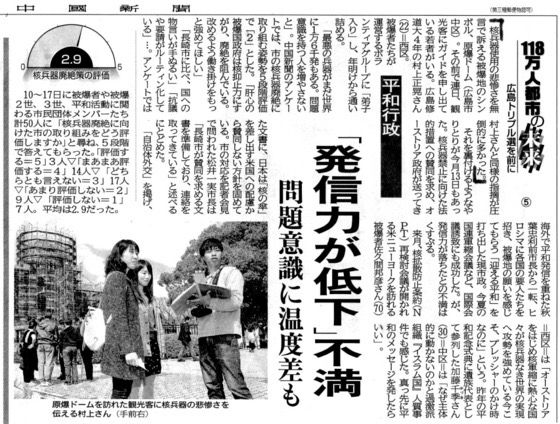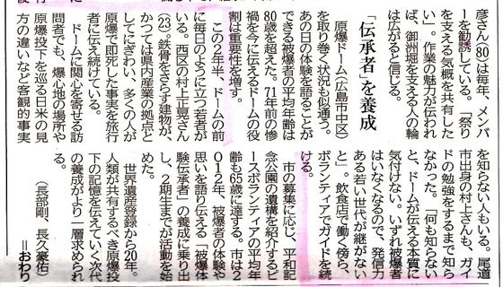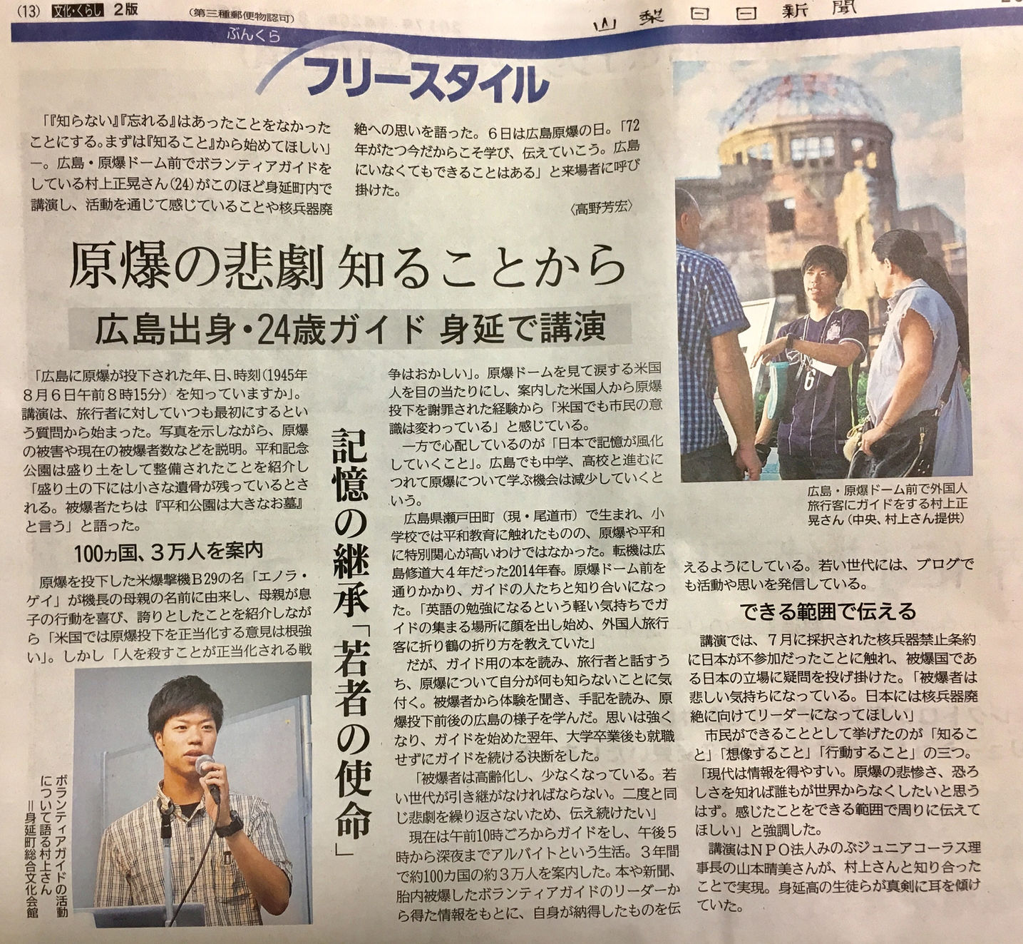 最初は観光客と折り鶴を折る活動をしていたが、その合間ガイドの方や被爆者の方の話を聞き、自分の無知を痛感し、そこから少しずつ勉強を始める。